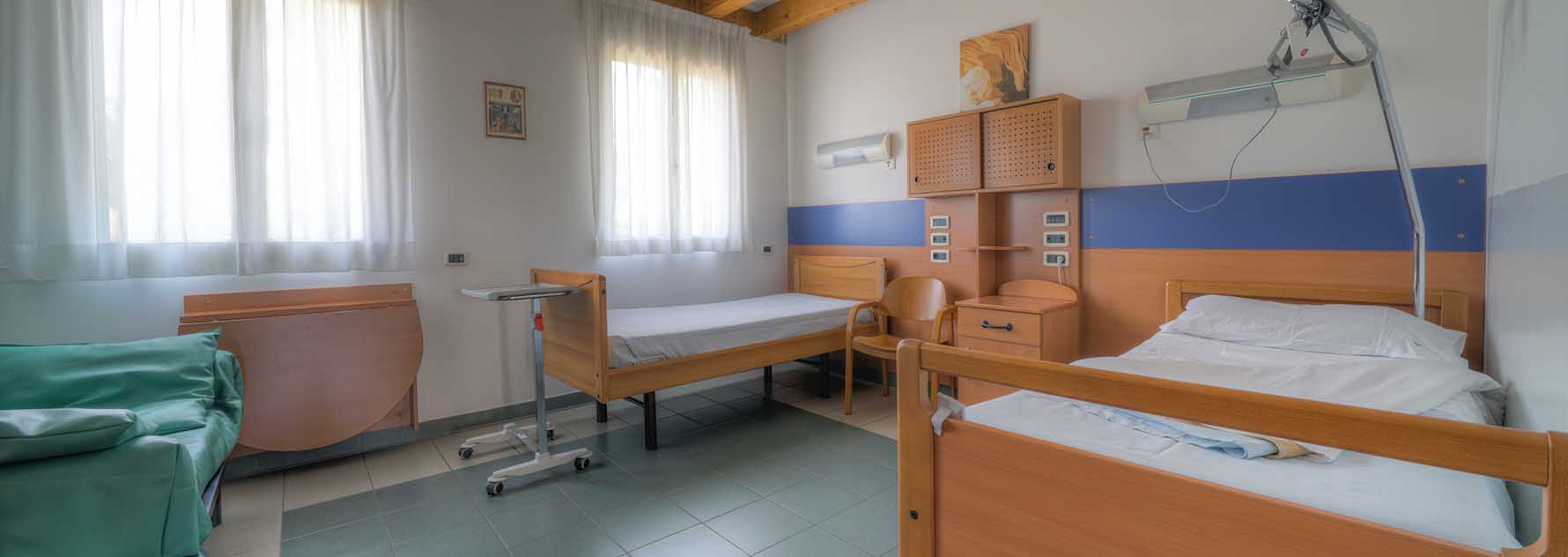 I pazienti sono tutti accolti in ampie stanze singole con servizio igienico dedicato. Nella stanza è possibile la permanenza anche di un familiare o caregiver nelle 24 ore.